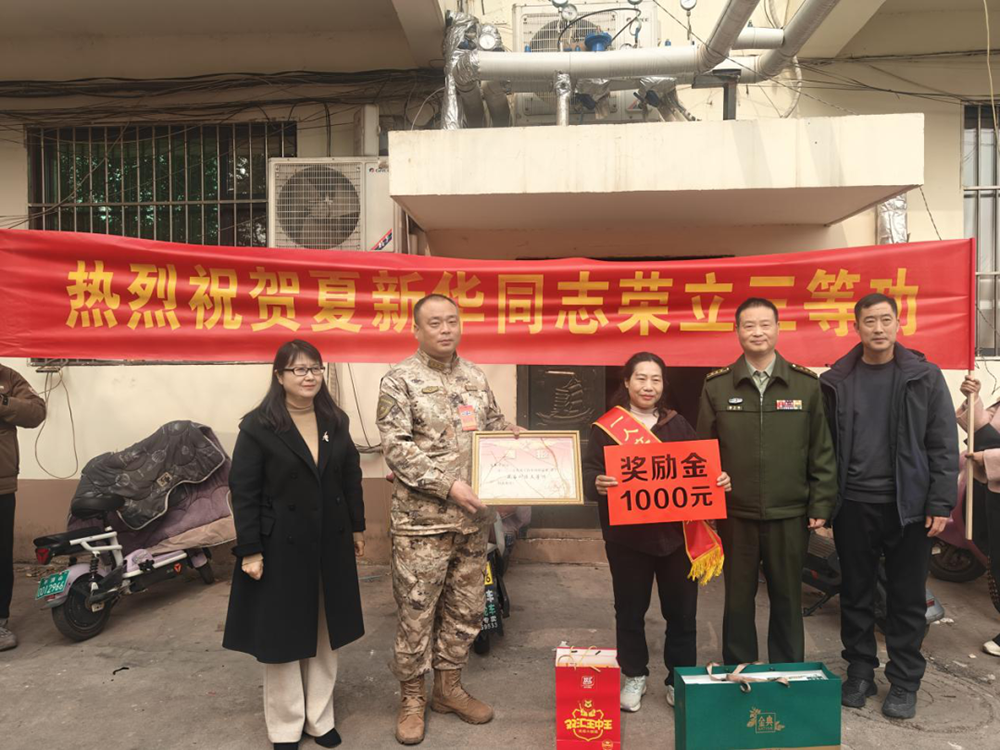 集中发放仪式结束后,军地领导专程前往荣立三等功的士兵夏新华家中,将喜报、奖励金和慰问祝福送到军属手中,与家属亲切交谈,详细了解家庭生活情况,感谢他们为部队培养输送优秀人才,让立功军人家庭在邻里乡亲的见证中共享荣光、倍感自豪,真正让“一人立功、全家光荣”落到实处。