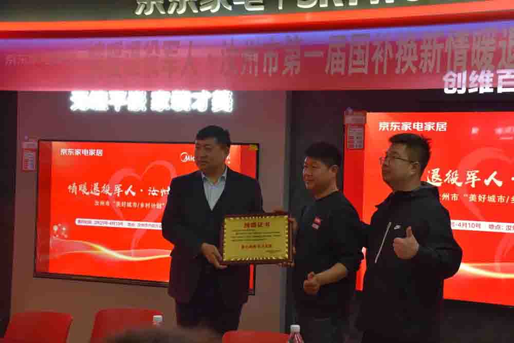 为大力弘扬拥军优属优良传统,切实关爱退役军人群体,3月26日,我市举行第一届“情暖退役军人”家电专项惠民补贴捐赠活动。活动以爱心捐赠与惠民补贴相结合的方式,为退役军人送上实实在在的关怀与福利,营造尊崇军人、关爱老兵的浓厚氛围。