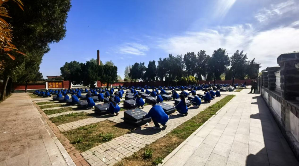 讲解结束后,学生们自发来到烈士纪念碑前,有序擦拭烈士墓碑,久久不愿离去,以实际行动缅怀先烈、致敬英雄。